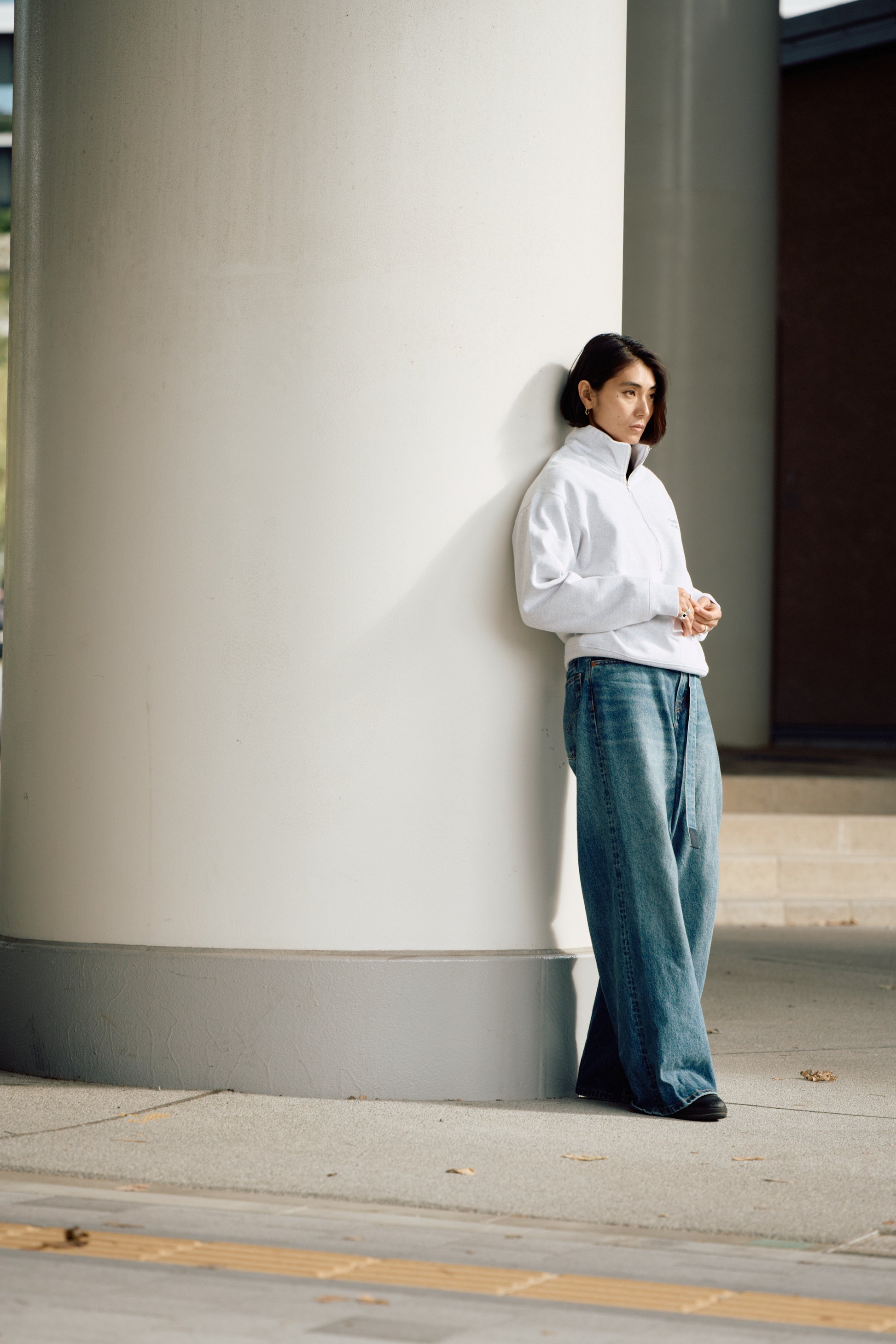 ジップの開閉でイメージがガラッと変わるハーフジップはサウナ後の首ものと冷えを防いでくれます。